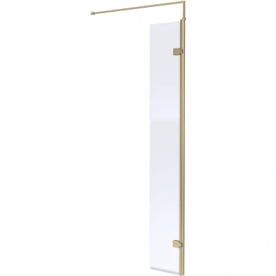 ManoManoGeneral description Manufactured from high-quality 8mm toughened safety glass, the Wetroom 8mm Toughened Safety Glass Hinged Return Screen and Support Bar features a striking Brushed Brass profile. This product is designed to create a dedicated and luxurious wetroom enclosure, effectively preventing excess water from splashing out. The return screen must be used in conjunction with another wetroom screen for optimal performance. Technical specifications Dimensions: W 322mm x H 1850mm x D 27mm Weight: 15.1 KG Compatibility and accessories Matching brassware available for a consistent bathroom design Additional support bars available Tray sold separately Installation Partial assembly required Usage Reversible design to fit both left and right-handed configurations Must be used with another wetroom screen Other information Manufacturer's lifetime guarantee reflects confidence in product durability