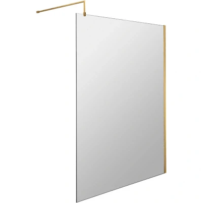 General description Wetroom 8mm Toughened Safety Glass Screen and Support Bar 1200mm x 1850mm - Brushed Brass is manufactured from high-quality 8mm toughened safety glass, featuring a striking Brushed Brass profile. This elegant wetroom screen creates a spacious and dedicated shower enclosure, perfect for a luxurious bathroom design. The classic frameless reversible design allows for installation on either side, and it can be combined with other screens to customize your enclosure. Technical specifications Dimensions: W 1200mm x H 1850mm x D 14mm Weight: 51.77 KG Compatibility and accessories Matching brassware available for a consistent bathroom design Additional support bars available Tray sold separately Installation Partial assembly required Usage Can be used on its own or combined with another screen to create a custom enclosure Other information Manufacturer's lifetime guarantee reflects confidence in product durability