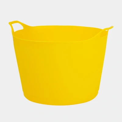 Large flexible tub Carry handles Made from flexible strong plastic Capacity: 40 litre capacity Measure points on the inside at 5 litre intervals Internal diameter top: 47cm approx. Internal diameter base: 36cm approx. Diameter top (incl handles): 54cm approx. Internal height: 37cm approx. Colour: Yellow