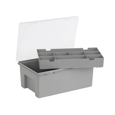 Wham Organiser Box 3.04.01 29cm with 8 Division Removable Tray Soft Grey/Clear