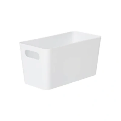 The Studio Basket 6.01 Rectangular in Ice White is sleek and versatile, suited to displaying your craft accessories, bathroom toiletries, makeup, pantry goods, cleaning and laundry products, stationery or toys.The handle aids easy access to slide the baskets when stored on shelves.Approx. 1.4L capacity. Dimensions: 20cm x 10cm x 10cm.Perfect for a vast range of items within the home.Available in a wide range of shapes and sizes to suit all storage needs.Made in Britain.Also available in Grey or Duck Egg Blue, subject to stock.