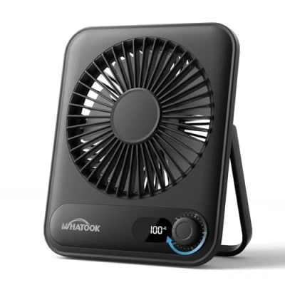 WHATOOK Mini Desk Fan USB: 2000mAh Rechargeable Ultra Quiet 1 100 Speeds Desktop Fans with LED Display, 3 10H Runtime, Child Safe Grille Cooling Small Portable Table for Home, Office & Travel