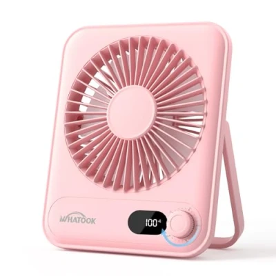 WHATOOK Mini Desk Fan USB: 2000mAh Rechargeable Ultra Quiet 1 100 Speeds Desktop Fans with LED Display, 3 10H Runtime, Child Safe Grille Cooling Small Portable Table for Home, Office & Travel