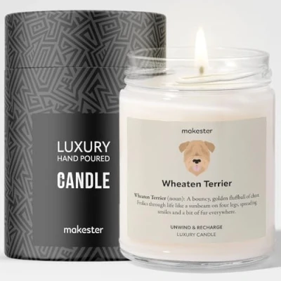 Wheaten Terrier Candle Over 100+ Breeds 220g Soy Wax Madagascan Vanilla & Jasmine Gift Dog Candles by Makester