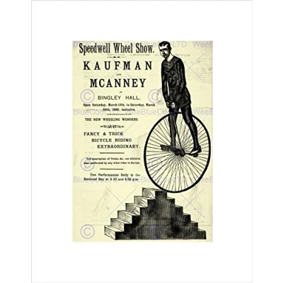 WHEEL CYCLE STUNT SPEEDWELL BINGLEY UK VINTAGE ADVERT FRAMED PRINT B12X907