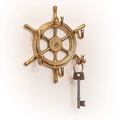 Brass ship's wheel featuring five hooks. Diameter 9".… From Nauticalia, specialists in nautical gifts and accessories since 1974 Durable and strong