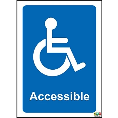 Wheelchair Accessible Notice Sign 1.2mm Rigid plastic 200mm x 150mm Digitally printed and laminated for extra durabillity Drill and screw in position or use double sided tape to mount onto suitable surface., Manufacturer: KPCM Display