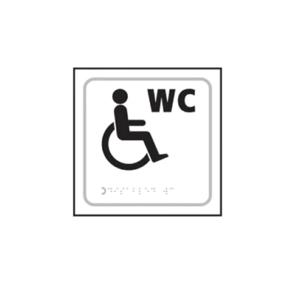 Wheelchair WC Toilet Braille Tactile Sign Self Adhesive White W150mm x H150mm
