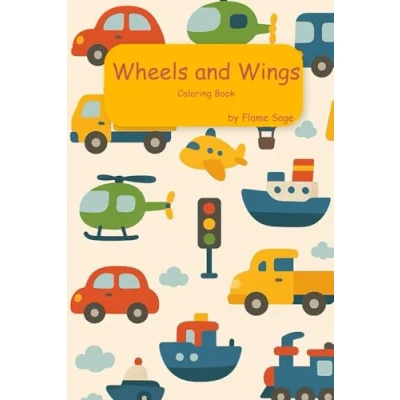 Wheels and Wings: Easy Educational Relaxing Coloring Book for Kids Adults