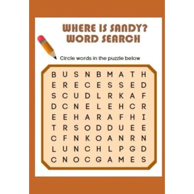 Where is Sandy? Word Search: The name “Sandy hidden in each of these challenging puzzles!