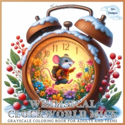 Whimsical Clockworld Mice Grayscale Coloring Book for Adults and Teens: 52 Delightful Designs of Adorable in Magical Clock Scenes Relaxation ... (Whimsical world inside small things.)