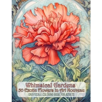Whimsical Gardens 50 Exotic Flowers in Art Nouveau Grayscale Coloring Book for Adults: Pages Adults (Art Flower Gardens)