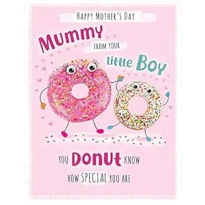 A High Quality Greeting Card and Envelope From Piccadilly Greetings Designed and made in the UK - supporting British jobs Caption: Mummy From Boy Description: MD Mummy From Boy Donut Approximate size: 8 x 6 inches