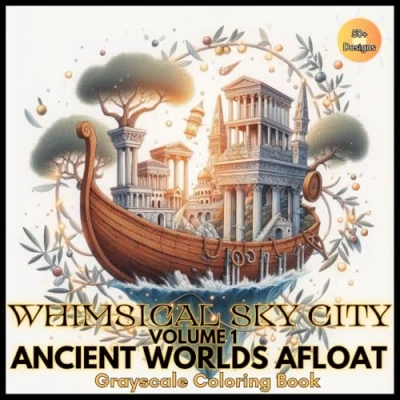 Whimsical Sky City Volume 1 Ancient Worlds Afloat Grayscale Coloring Book: Fantastical Designs of Miniature Cities on Floating Magical Boats ... (Magical Creatures and Fantasy Adventures)
