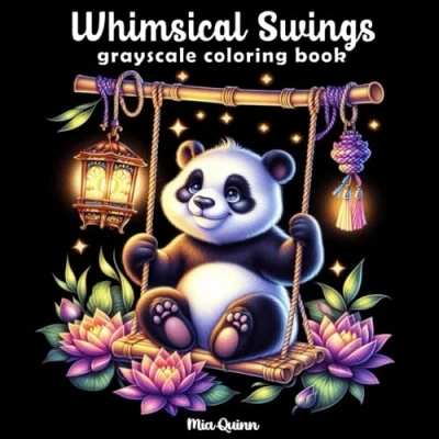 Whimsical Swings Grayscale Coloring Book for Adults: 50 Charming Illustrations of Cute Animals on Against a Black Background Stress Relief and Relaxation