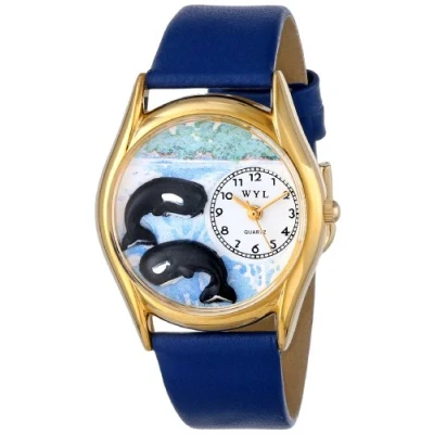 Whimsical Watches Whales Royal Blue Leather and Goldtone Unisex Quartz Watch with White Dial Analogue Display Multicolour Strap C 0140001