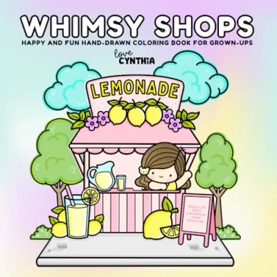 Whimsy Shops: Happy and fun hand drawn coloring book for grown ups!