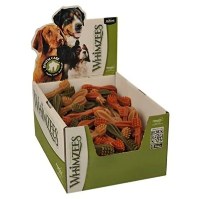 WHIMZEES Natural Dental Treats are designed for the dental care and oral hygiene of medium-sized adult dogs. Made with 100% natural ingredients and compliant with human food quality standards, these treats are hypoallergenic and low in protein, making them suitable for a wide range of dogs. Each treat is shaped like a stick, measuring 11.4 cm, and is specifically designed to protect teeth and gums while promoting dental health. With their unique texture, they help reduce plaque and tartar while providing a pleasing chewing experience for your dog. The package contains 75 units, and it is recommended to give one treat per day. Treats should be stored in a dry place to maintain their quality. They contain special ingredients like Annatto extract and are available in M flavor. These treats are ideal for medium-sized dogs and are an excellent choice for maintaining good oral hygiene. Be sure to check the expiration date to ensure the freshness of the product.