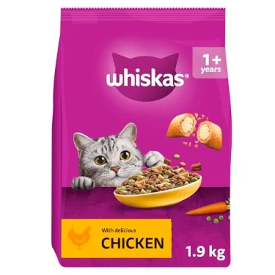 Whiskas 1+ Chicken Pack of 4 x 1.9 kg Bags, Adult Cat Dry Food