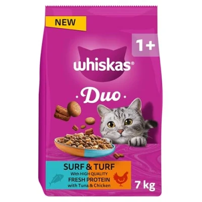 WHISKAS 1+ DUO Surf & Turf Dry Cat Food 7kg