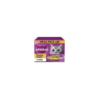 whiskas 7+ Poultry Feasts Senior Wet Cat Food Pouches in Jelly 80 x 85g