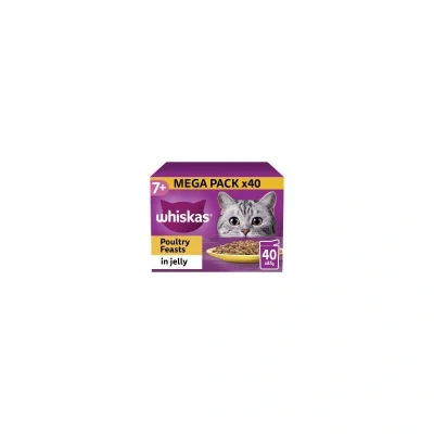 Whiskas 7+ Senior Cat Food Poultry Selection in Jelly, 85 g (Pack of 40), Packaging May Vary