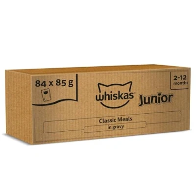 Whiskas Junior Classic Selection in Gravy 84 Pouches, Wet Kitten & Cat Food, of Beef, Lamb, Chicken Poultry, Megapack (84 x 85 g)