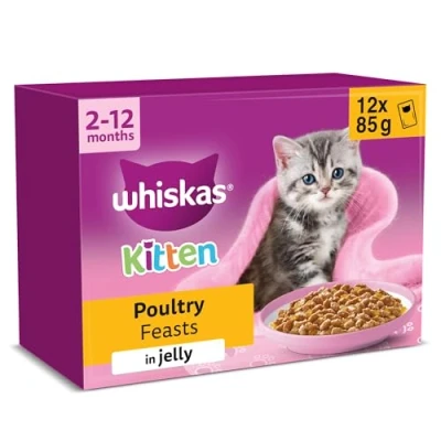 Whiskas Junior Poultry Selection in Jelly 48 x 85 g Pouches, Kitten Cat Food, Pack of 4 (12 g)