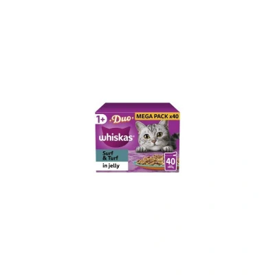 Whiskas Tasty Duo 1+ Surf and Turf in Jelly 40 x 85 g Pouches, Adult Cat Food