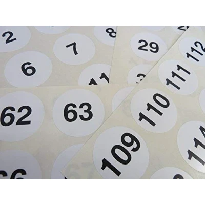 White 40mm Round Consecutive, Sequential Number Sequence Labels, Numbering Stickers, from 1 120