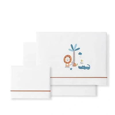 Baby Stroller Bed Sheet Set consisting of 3 pieces fitted sheet, countertop and pillowcase. Made of 100% cotton, perfect for the spring and summer months being very breathable. Dimensions fitted sheet: 50x80 cm, flat sheet: 110x82 cm and pillowcase: 50x30 cm. Made in Spain.