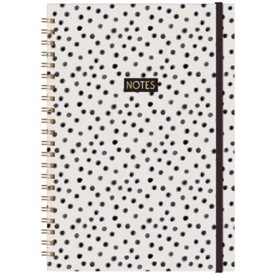 Elegant Design : Off-White hardback cover with classic black polka dots pattern for a timeless aesthetic Wiro Bound : The gold coloured wiro binding allows the planner to lay flat, providing convenience and ease of use Lined Pages : The ruled pages allow you to jot down notes, plans, and thoughts with ease Quality Paper : Contains 160 pages (80 sheets) of high-quality 80gsm FSC sourced paper Elastic Closure : Convenient elastic closure keeps your planner securely closed when not in use A4 Size : Measures approx 30.7cm x 22cm x 1.7cm , Ideal for keeping on your desk