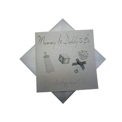 WHITE COTTON CARDS MUMMY & DADDY TO BE SILVER FEET GOOD LUCK...