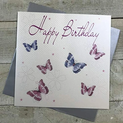 white cotton cards 1 Piece Happy Birthday Extra Large Handmade Card, Mixed Butterflies