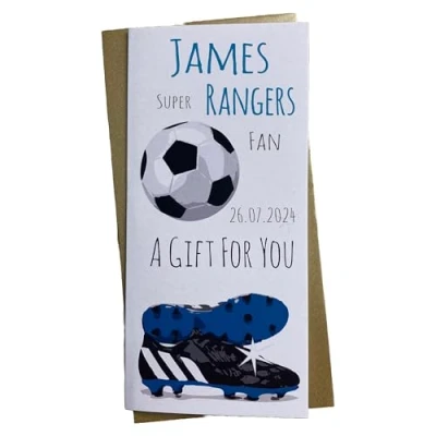 WHITE COTTON CARDS 1 X PERSONALISED BIRTHDAY MONEY WALLET Rangers The Gers Light Blues Football Club FC (P WBW F8)