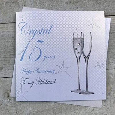 WHITE COTTON CARDS 15th Crystal Wedding Anniversary to My Husband Handmade Card Champagne Flutes BD115 H, 16x16cm