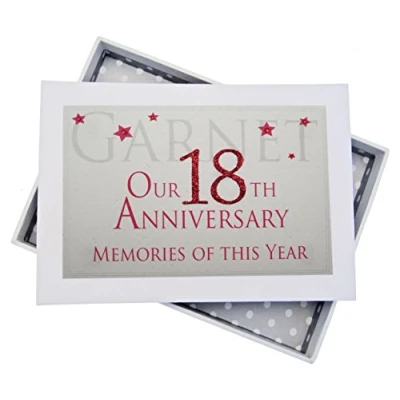 Beautiful handmade 18th Garnet Anniversary Memories of This Year, Glitter & Words, photo album Presented in a white gift box with a clear perspex lid Includes 16 pockets to hold up to 32 photos Hand finished with gorgeous diamantes and sparkling glitter The perfect gift for your special occasion