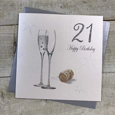 WHITE COTTON CARDS 21 Happy, Handmade 21st Birthday Card, Champagne/Hologram