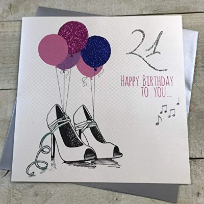 WHITE COTTON CARDS 21 Happy Handmade 21st Birthday Card, Code XE67 21, Pink