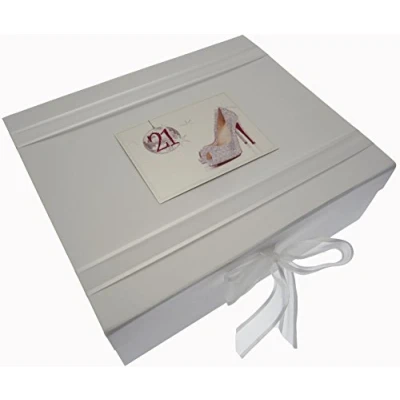 White Cotton Cards 21st Birthday Keepsake Box Glitter Ball and Shoes (Large)