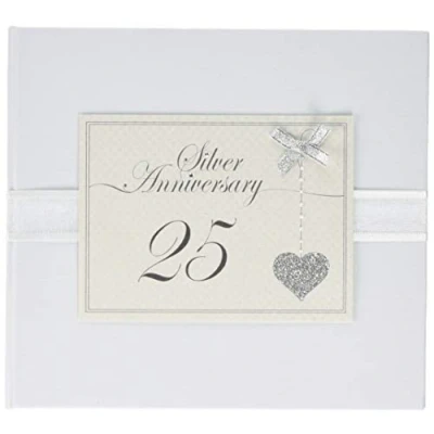White Cotton Cards 25th Anniversary, Sparkling Love Heart Guest Book (LLA25G)