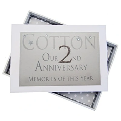 Beautiful handmade 2nd Cotton Anniversary Memories of This Year, Glitter & Words, photo album Presented in a white gift box with a clear perspex lid Includes 16 pockets to hold up to 32 photos Hand finished with gorgeous diamantes and sparkling glitter The perfect gift for your special occasion