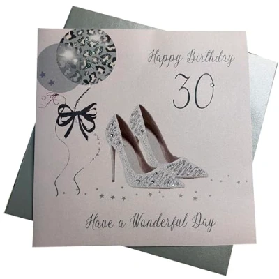 white cotton cards 30 Happy Wonderful Day, Handmade Large 30th Birthday Card (Shoes & Bag), fabric, Pink