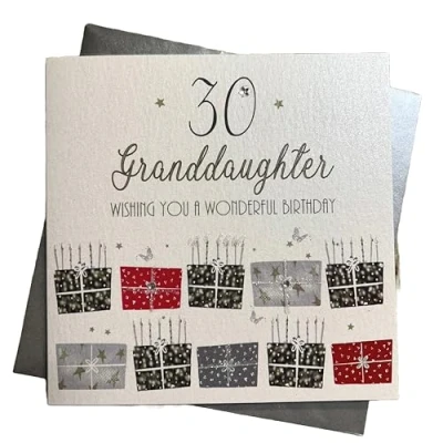 WHITE COTTON CARDS 30 Wishing you a Wonderful Granddaughter Handmade 30th Birthday Card, White, bdp30 gran.d