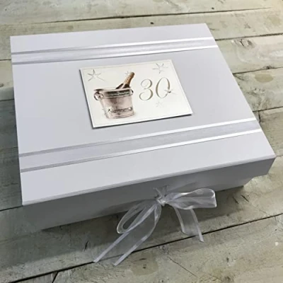White Cotton Cards 30th Birthday Keepsake Box, Large, Silver Champagne