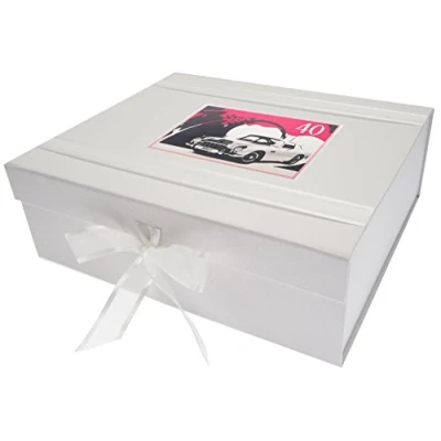 White Cotton Cards 40th Birthday, Large Keepsake Box, Classic Car, Wood, 27.2 x 32 11 cm