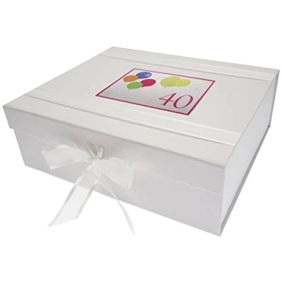 White Cotton Cards 40th Birthday, Large Keepsake Box, Neon Glitter Balloons