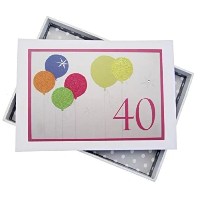 White Cotton Cards 40th Birthday, Mini Photo Album, Neon Glitter Balloons