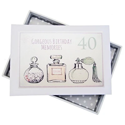 White Cotton Cards 40th Birthday, Mini Photo Album, Perfume Bottles, Wood, 12.5 x 17.5 2.5 cm