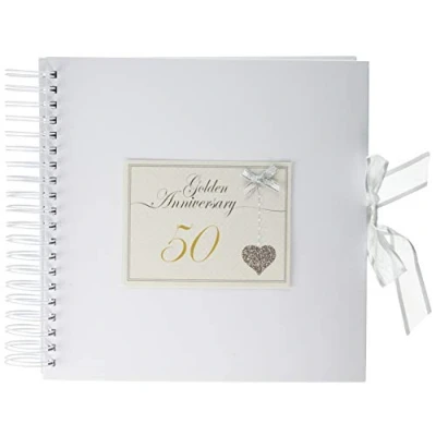 White Cotton Cards 50th Anniversary Sparkling Love Heart, Card & Memory Book (LLA50C)